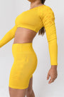 Nuestro Set Armonía; compuesto por nuestro Biker Armonía Amarillo y nuestro Crop Top Suerte Amarillo es ideal para las mujeres que les encanta estar a la moda y tener prendas cómodas y versátiles.